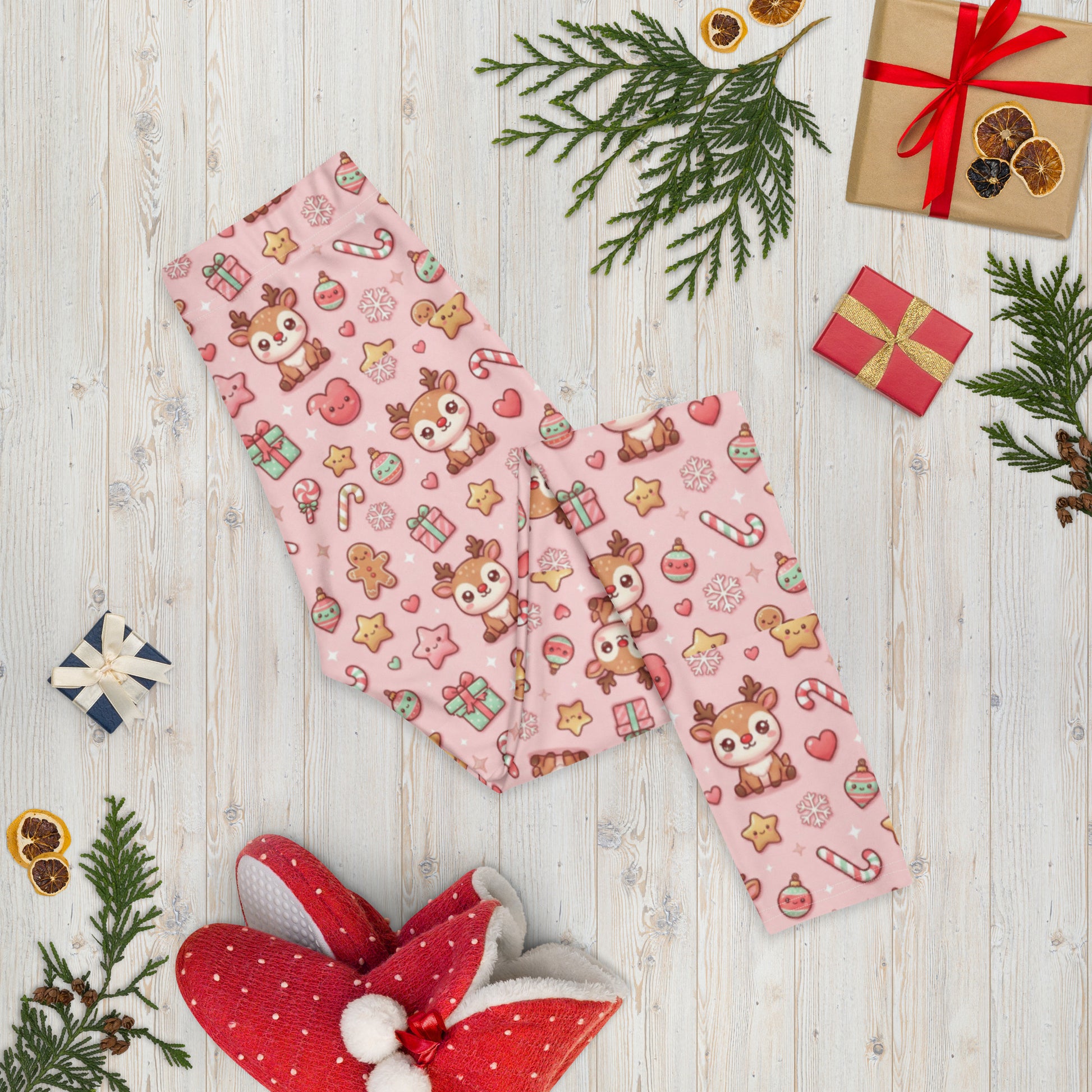 Pink Christmas All-Over Print Leggings – Women’s Holiday Stretch Pants
